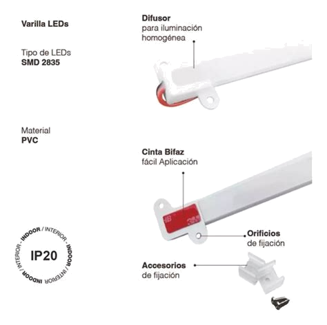 Ilumina tus espacios con la varilla LED de 40cm, perfecta para montaje en superficie y eficiente en consumo energético.