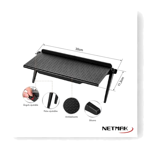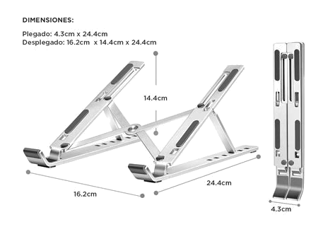 Soporte estable y antideslizante, fabricado en aluminio para una mejor ventilación y ergonomía.