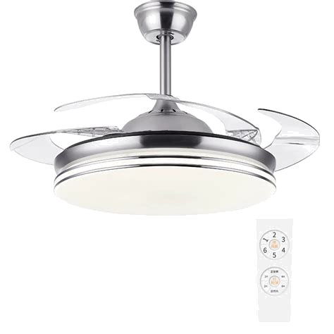 Ventilador de techo elegante con aspas retráctiles y pantalla LED, ideal para cualquier ambiente moderno y funcional.
